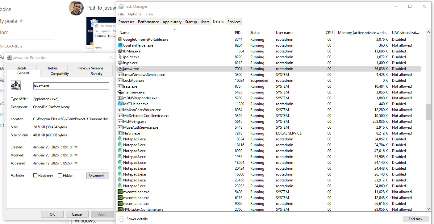 Latest version of 3.3 cannot launch through the exe shortcut on Windows 10. The ganttproject.exe and javaw.exe appear in Task Manager but no UI is visible.